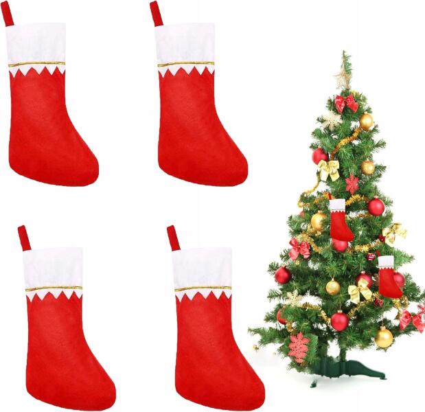 4 darabos, piros-fehér karácsonyi harisnya szett kandallóra, ajándékokhoz (B0DCZHG5ZP)ALLEGRO