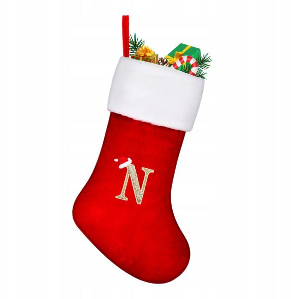 Nagy, 45 cm-es piros karácsonyi zokni "n" betűvel karácsonyra (B0CLRSD7G6)ALLEGRO